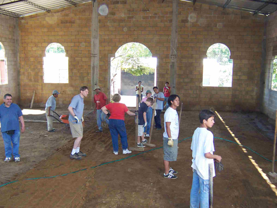 Along with the members of Berwyn UMC, this team was augmented with the presence of: Barbara Wenger (Lincoln Park UMC), John Stauffer, Mary Ann Stauffer, David Stauffer (New Berlinville UMC). The Berwyn UM Administrative Board adopted a resolution establishing a covenant relationship with Iglesia Evangelica Metodista Roca Eterna in Ahuachapan. Ahuachapan is the headquarters of the Methodist Church in El Salvador. The church (New Jerusalem Methodist Church) that is being built is a fairly large one. It is designed to seat up to 400. There are also plans to build a Christian Education Center and a parsonage. This team worked on laying the floor of the church.